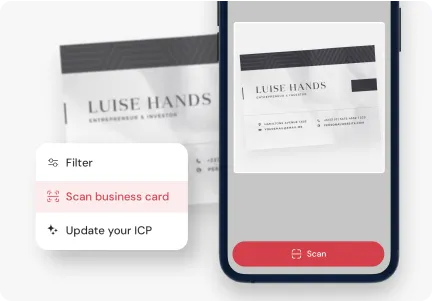 Sometimes you receive a paper business card, or maybe you have a stack sitting in a drawer. Scan and import business cards with Mobilo AI and combine clever data enrichment to send these straight to your marketing database.